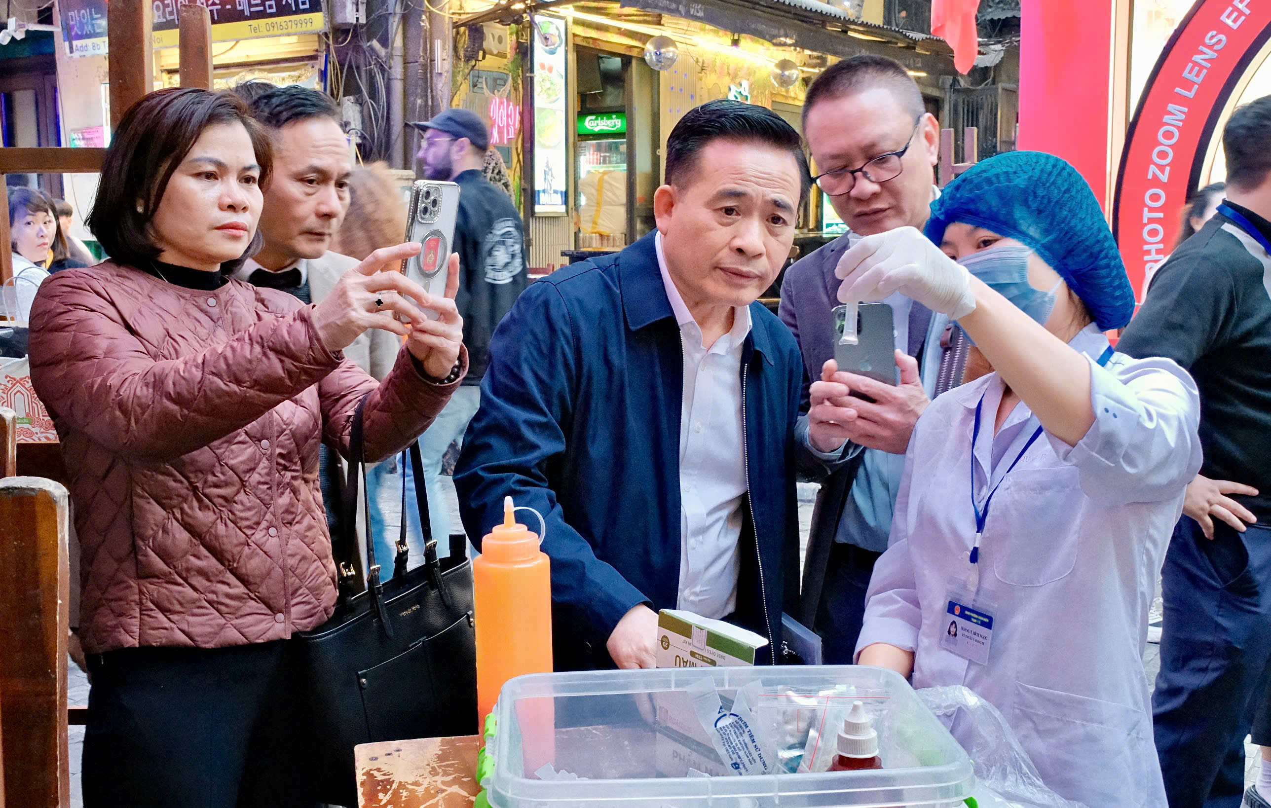 Theo báo cáo của đại diện lãnh đạo UBND phường Hoàn Kiếm, trên địa bàn phường hiện nay có 2.004 cơ sở sản xuất, kinh doanh thực phẩm, dịch vụ ăn uống, thức ăn đường phố; có 1 siêu thị, 2 chợ có hoạt động bán hàng thực phẩm (Chợ Đồng Xuân, Chợ Hàng Da). Từ ngày 1/7/2025 đến nay, trên địa bàn phường không để xảy ra các vụ ngộ độc thực phẩm.