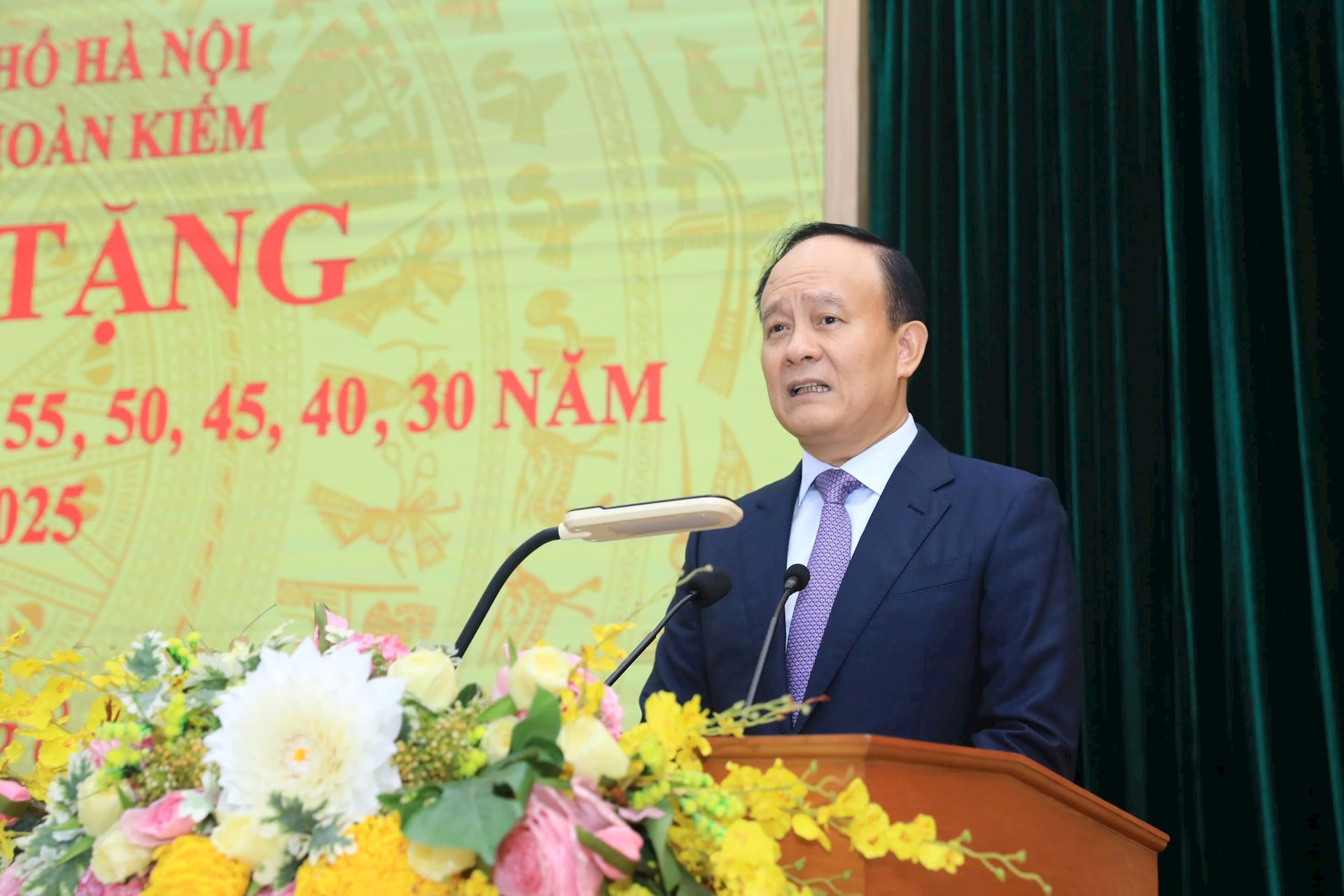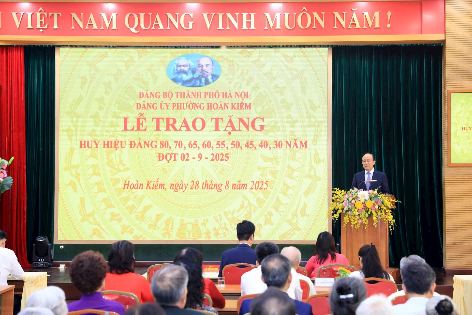 Trân trọng trao Huy hiệu Đảng tới các đồng chí đảng viên lão thành, Phó Bí thư Thành ủy, Chủ tịch HĐND Thành phố Nguyễn Ngọc Tuấn cho biết, đợt này, toàn Thành phố có 10.622 đồng chí được nhận Huy hiệu Đảng. Đảng bộ phường Hoàn Kiếm vinh dự có 138 đồng chí, đặc biệt trong đó có 02 đồng chí được tặng Huy hiệu 80 năm tuổi Đảng, 01 đồng chí được tặng Huy hiệu 70 năm tuổi Đảng.