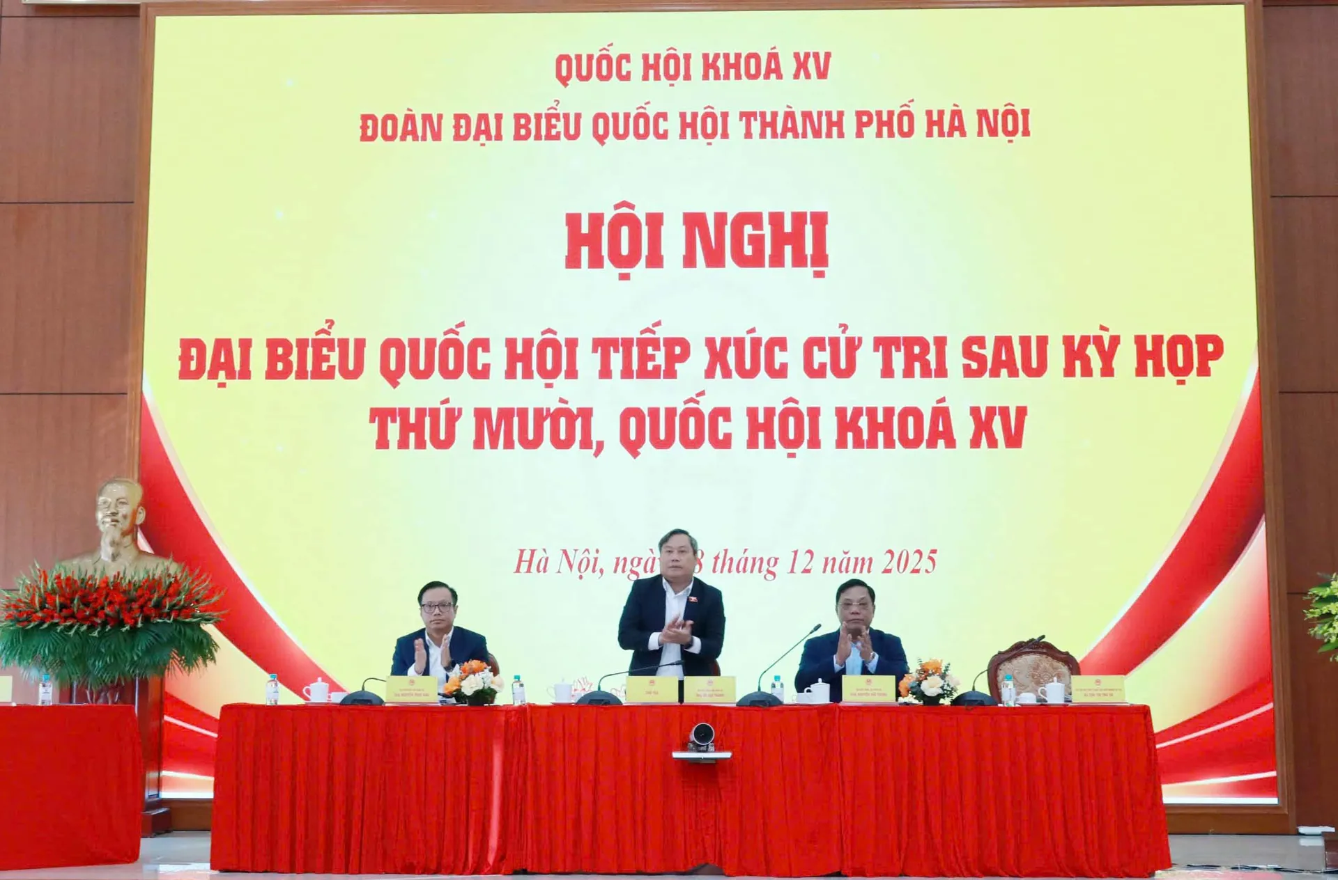 Chiều 18/12/2025, đại biểu Quốc hội thành phố Hà Nội (đơn vị bầu cử số 5) tiếp xúc cử tri của 11 xã, phường: Tây Hồ, Phú Thượng, Tây Tựu, Phú Diễn, Xuân Đỉnh, Đông Ngạc, Thượng Cát, Hoài Đức, Dương Hòa, Sơn Đồng, An Khánh sau kỳ họp thứ 10, Quốc hội khóa XV, nhiệm kỳ 2021-2026.