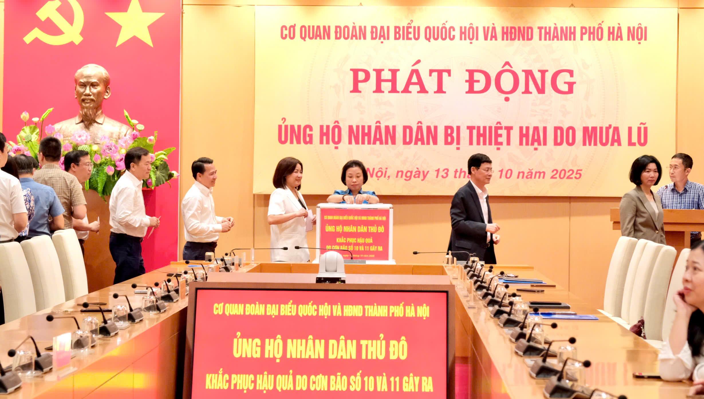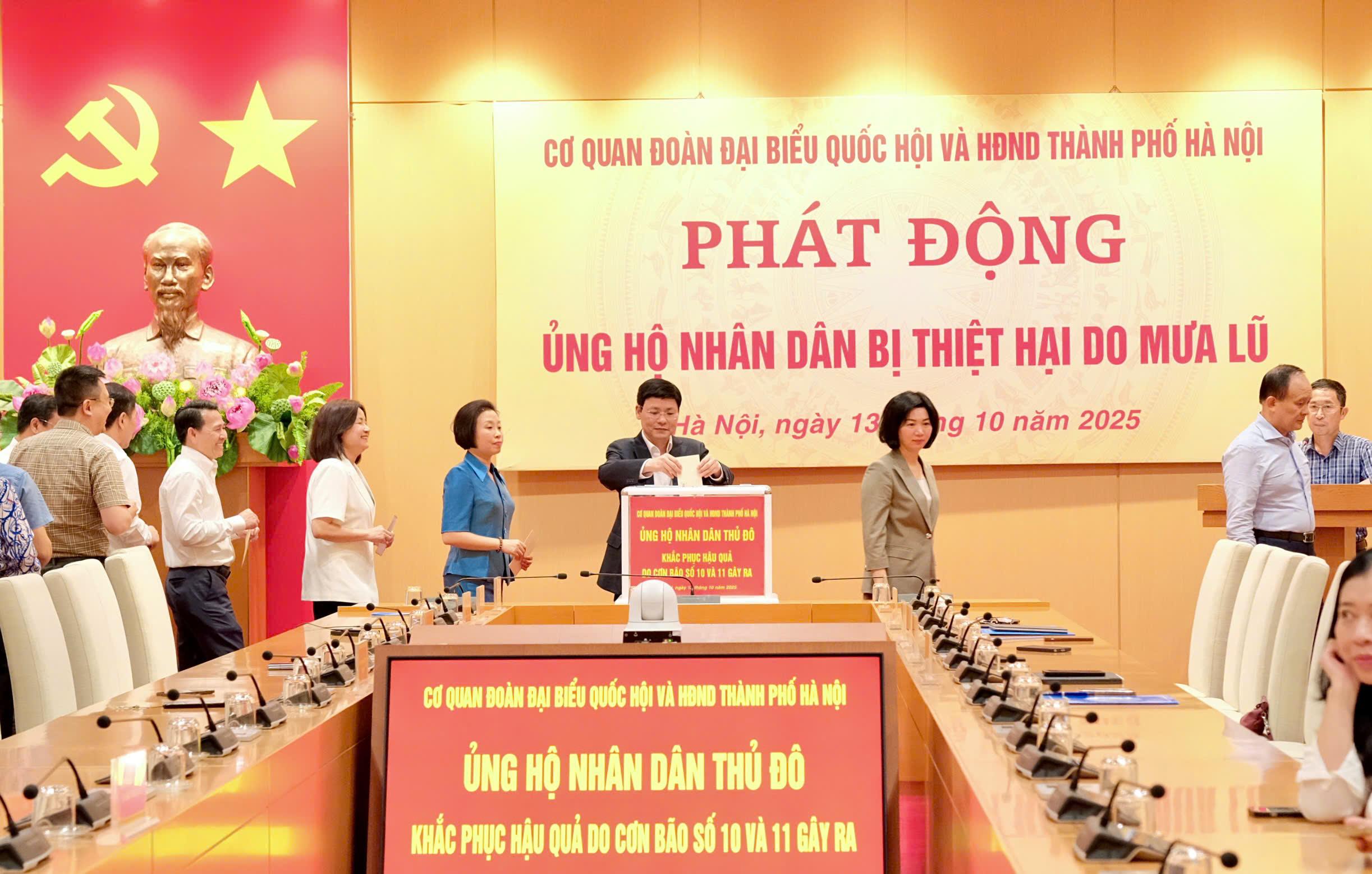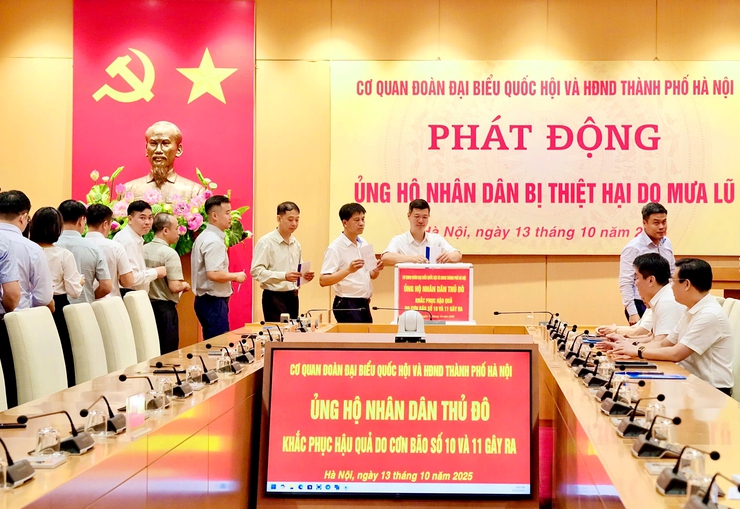 Trước ảnh hưởng của cơn bão số 10 và 11 gây thiệt hại cho người dân một số xã trên địa bàn Hà Nội, chiều 13/10/2025, Cơ quan Đoàn đại biểu Quốc hội và HĐND thành phố Hà Nội phát động toàn thể cán bộ, nhân viên cơ quan ủng hộ, sẻ chia với Nhân dân bị thiệt hại do mưa lũ.