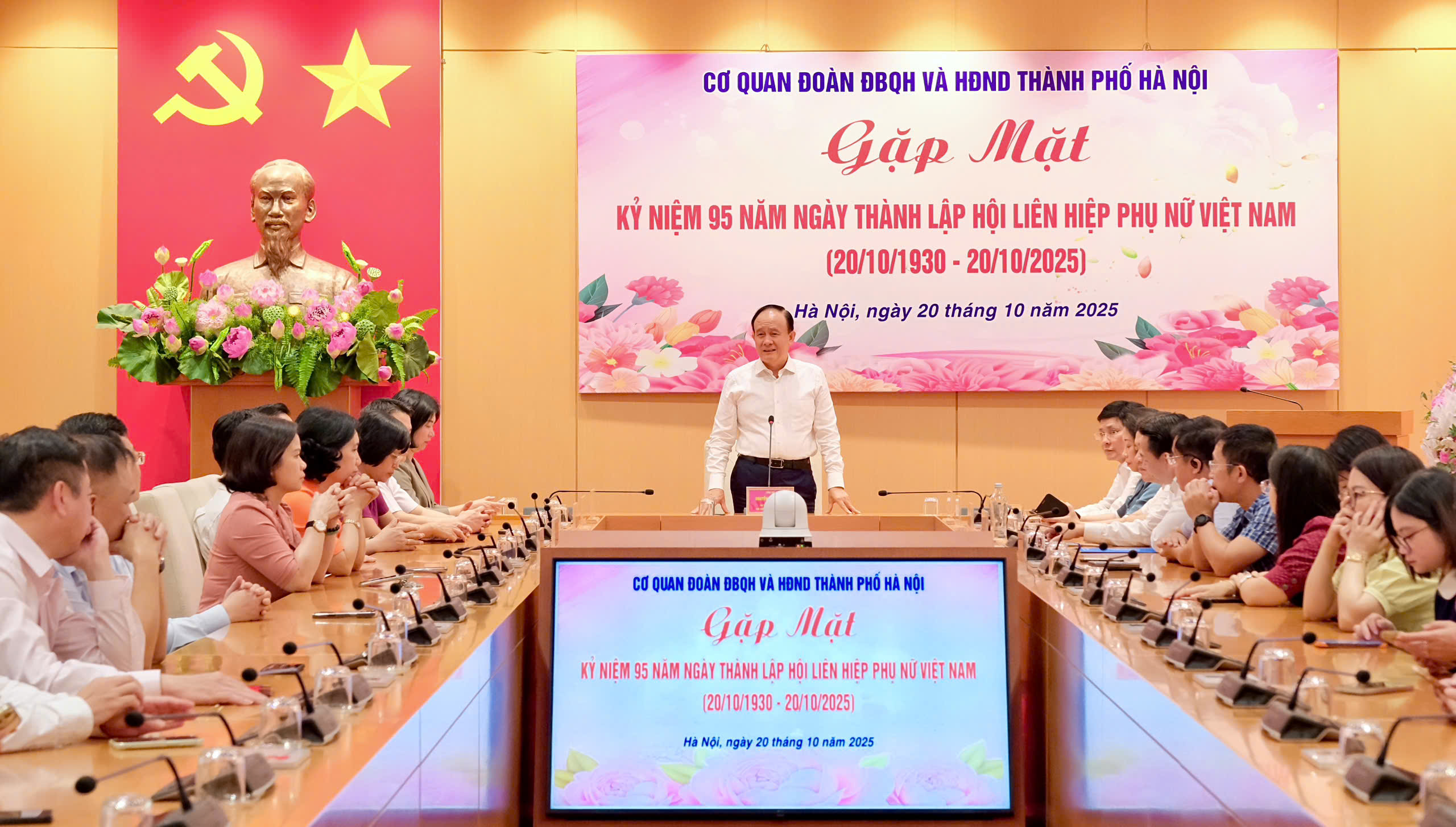 Nhân dịp kỷ niệm 95 năm Ngày thành lập Hội Liên hiệp Phụ nữ Việt Nam (20/10/1930 - 20/10/2025) và chào mừng thành công Đại hội Đại biểu Đảng bộ thành phố Hà Nội lần thứ XVIII, sáng 20/10/2025, Cơ quan Đoàn ĐBQH và HĐND Thành phố tổ chức buổi gặp mặt và chúc mừng các đồng chí nữ cán bộ, công chức, người lao động trong cơ quan.