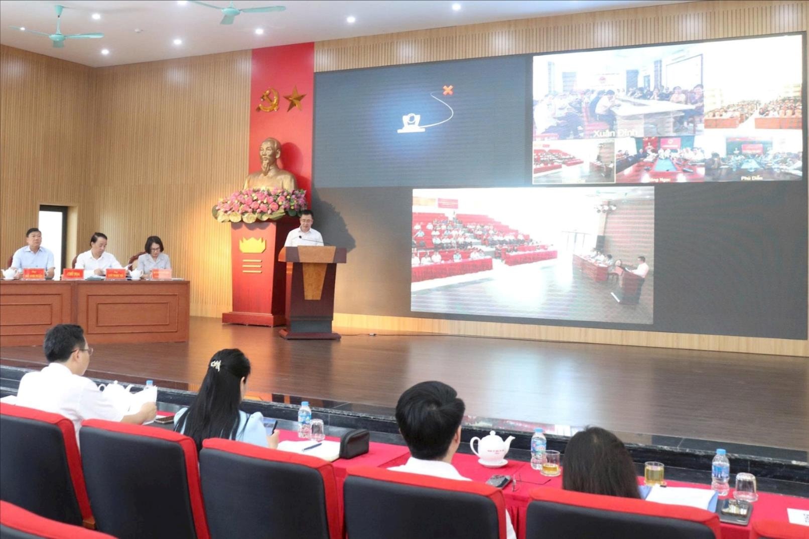 Hội nghị được tổ chức trực tiếp tại trụ sở UBND phường Thượng Cát, kết nối trực tuyến với 4 điểm cầu: Tây Tựu, Phú Diễn, Đông Ngạc và Xuân Đỉnh.