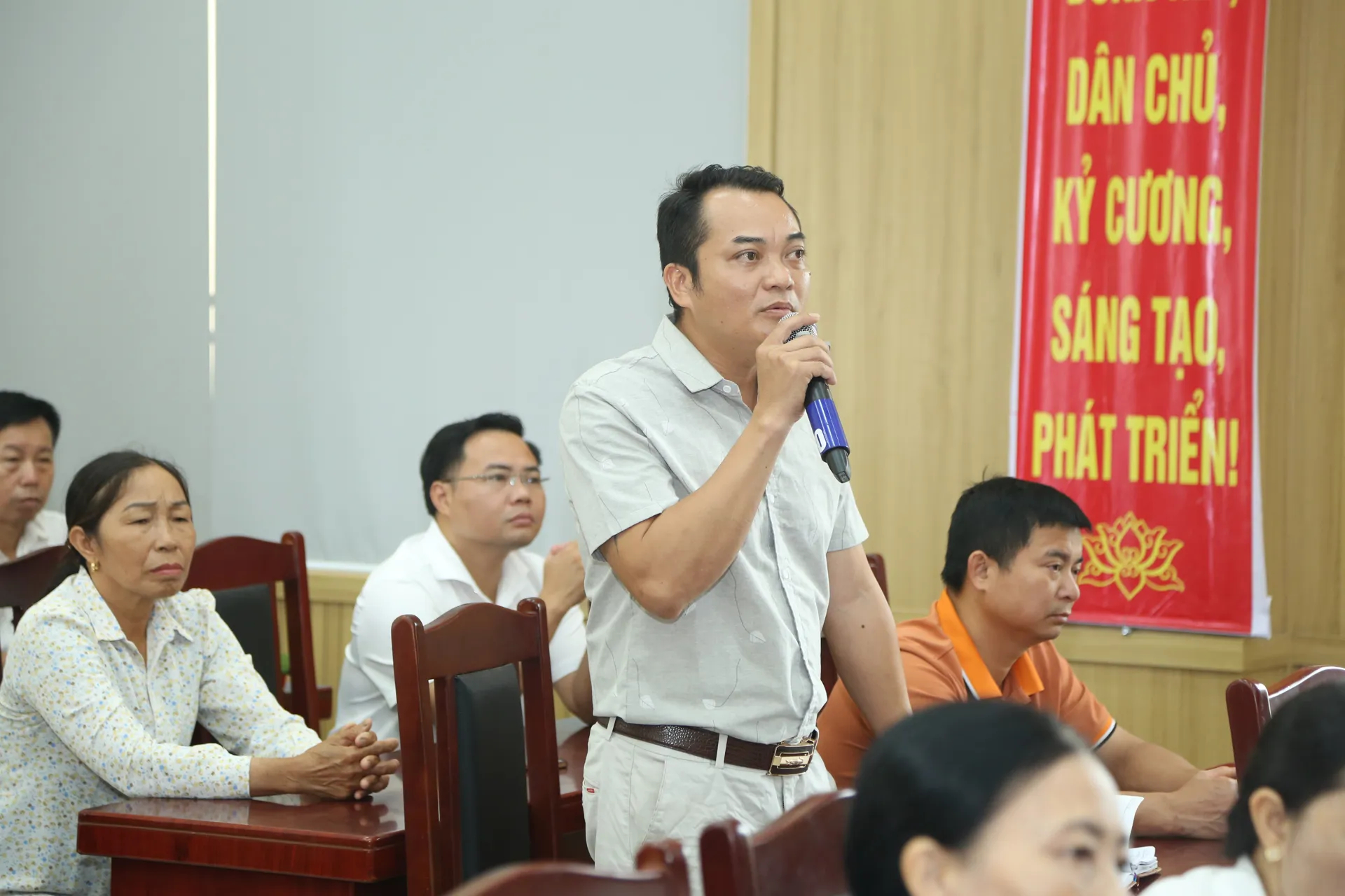 Cử tri phát biểu ý kiến tại buổi tiếp xúc