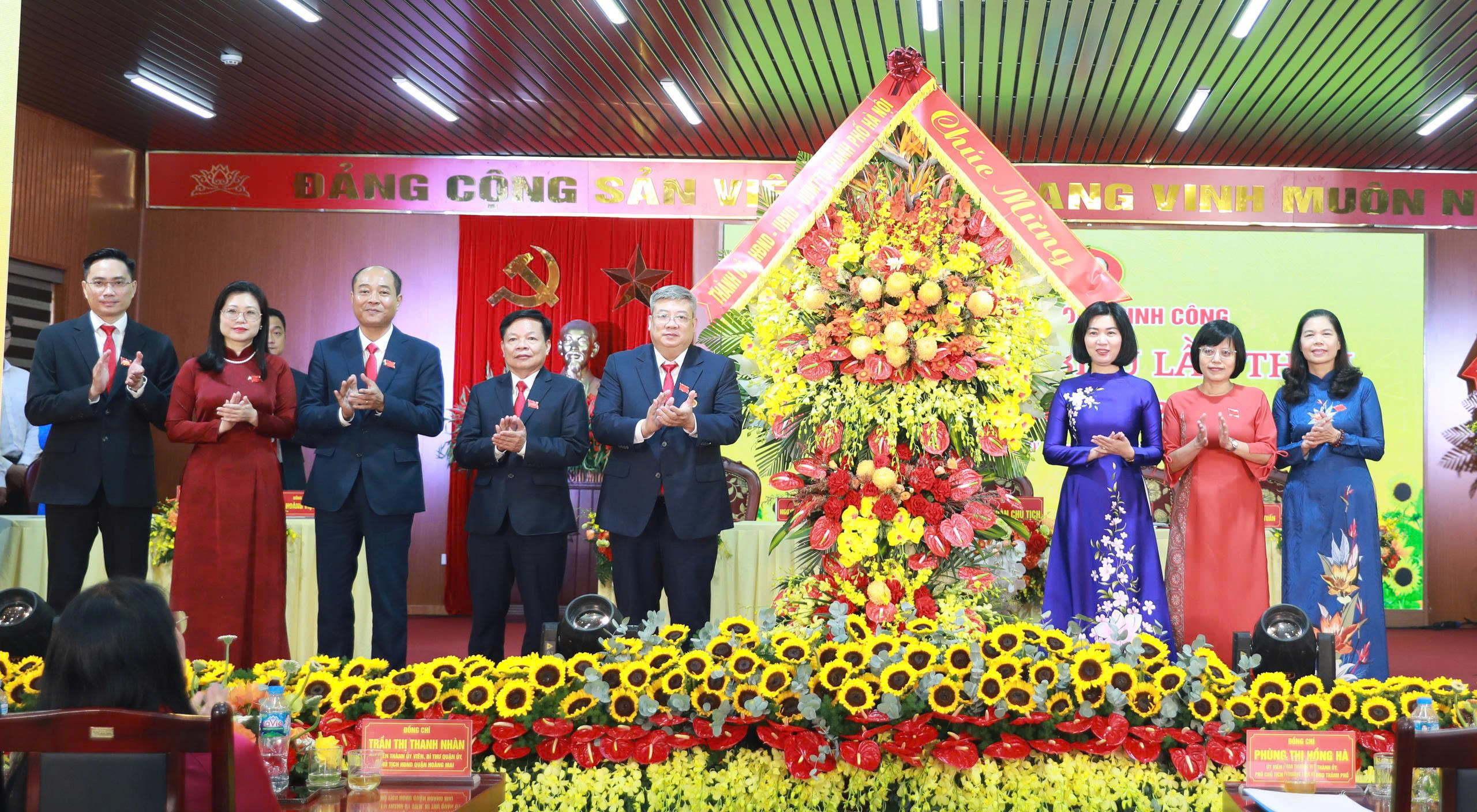 Phó Chủ tịch Thường trực HĐND Thành phố Phùng Thị Hồng Hà tặng hoa chúc mừng Đại hội