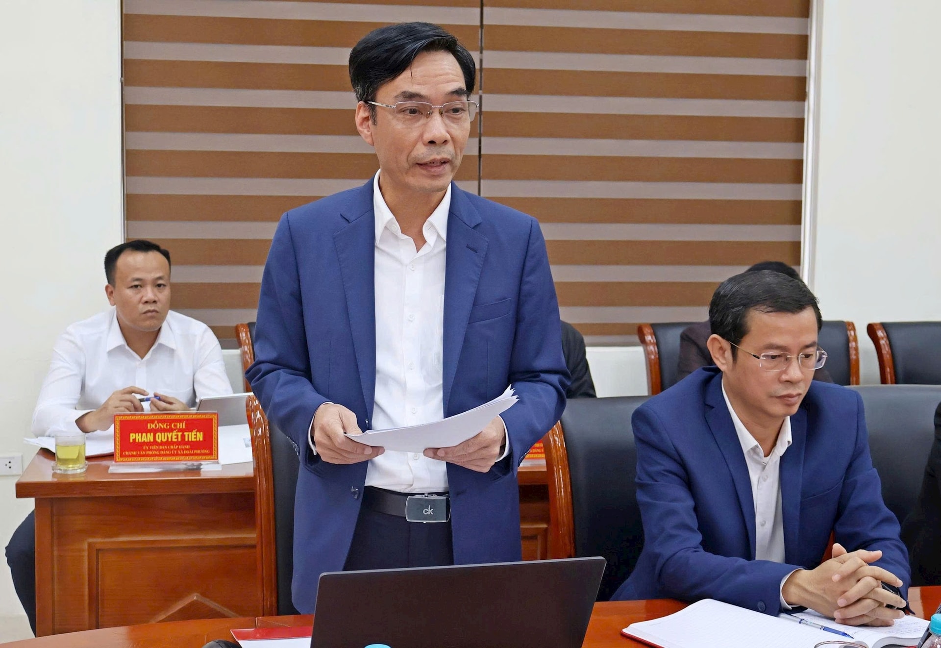 Bí thư Đảng ủy, Chủ tịch HĐND xã Đoài Phương Nguyễn Quang Hán báo cáo tại buổi làm việc.