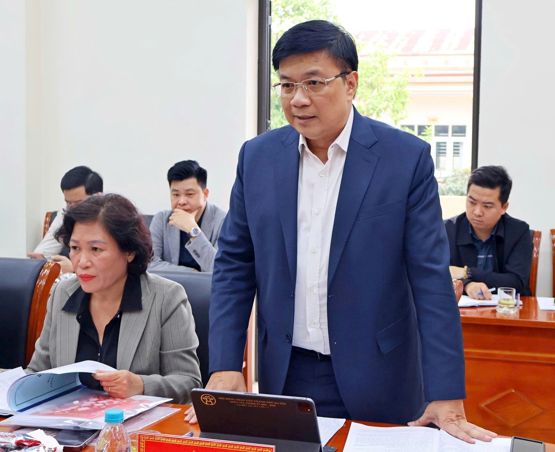 Phó Chủ tịch Thường trực HĐND thành phố Hà Nội Trần Thế Cương phát biểu chỉ đạo tại buổi làm việc.