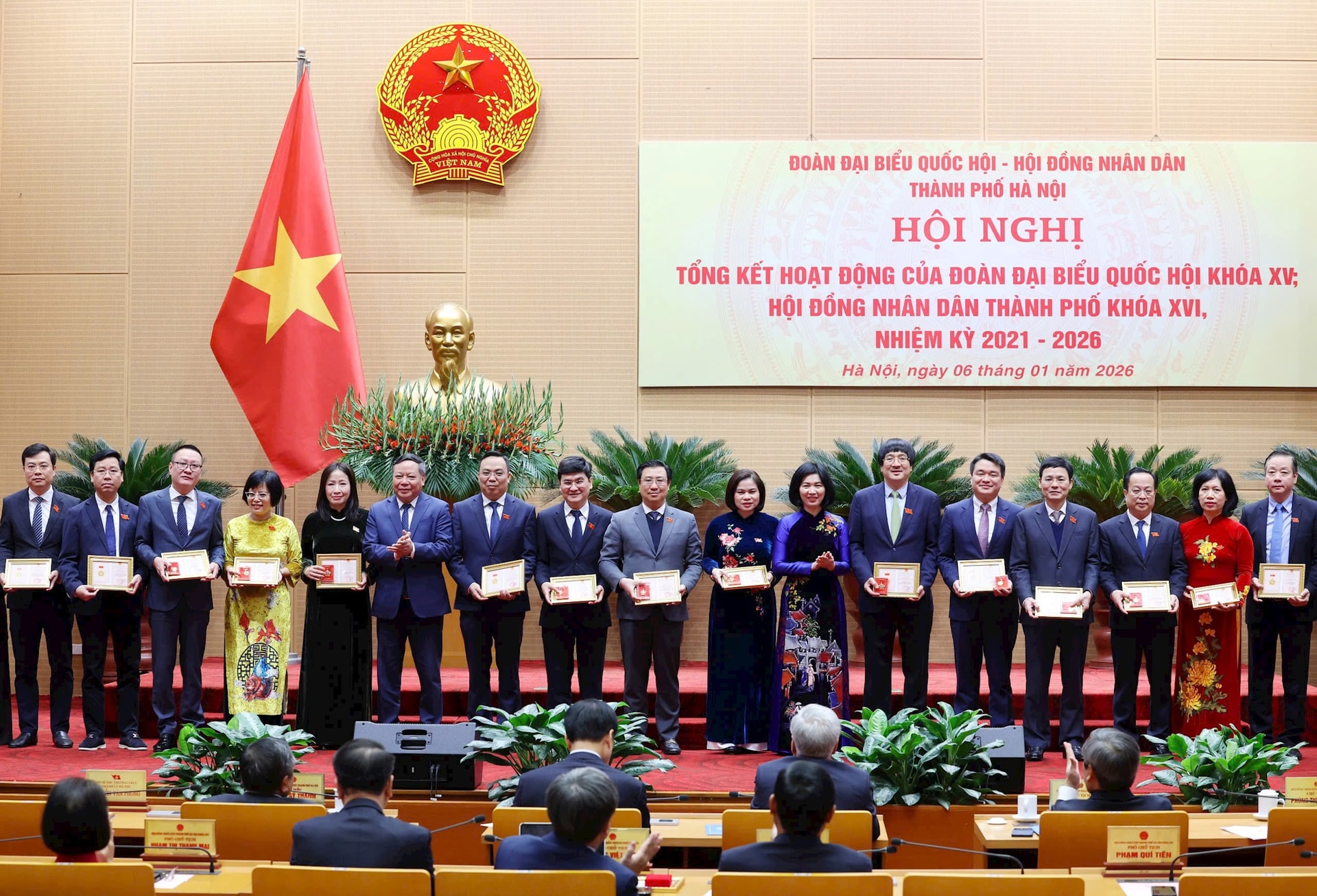Sáng 06/01/2026, Đoàn đại biểu Quốc hội khóa XV và Hội đồng nhân dân thành phố Hà Nội khóa XVI tổ chức Hội nghị tổng kết nhiệm kỳ 2021-2026. Hội nghị được tổ chức theo hình thức trực tiếp kết hợp trực tuyến từ điểm cầu thành phố Hà Nội đến 126 xã, phường.