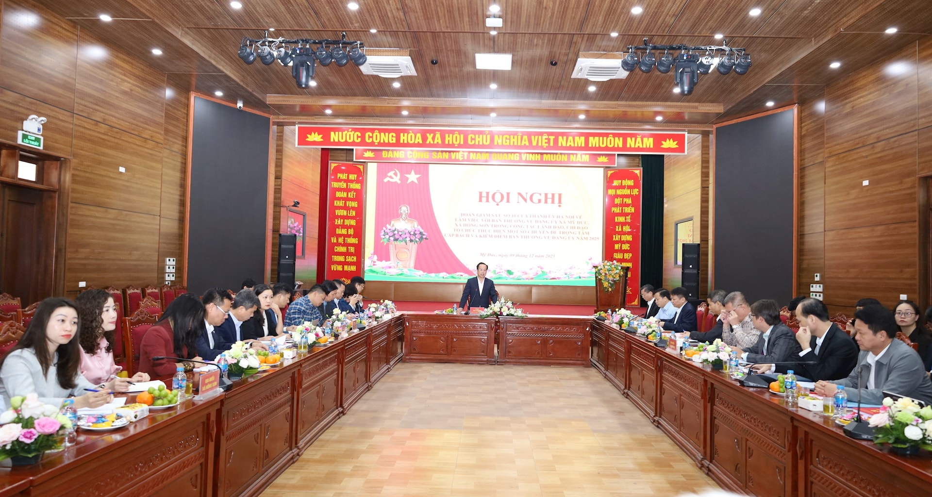 Sáng 09/12/2025, tại xã Mỹ Đức, đồng chí Trần Thế Cương, Ủy viên Ban Thường vụ Thành ủy, Phó Chủ tịch Thường trực HĐND Thành phố, Trưởng đoàn giám sát số 10 của Ban Thường vụ Thành ủy, đã chủ trì buổi làm việc với Ban Thường vụ Đảng ủy xã Mỹ Đức và xã Hồng Sơn về các chuyên đề trọng tâm, cấp bách và kiểm điểm công tác năm 2025.