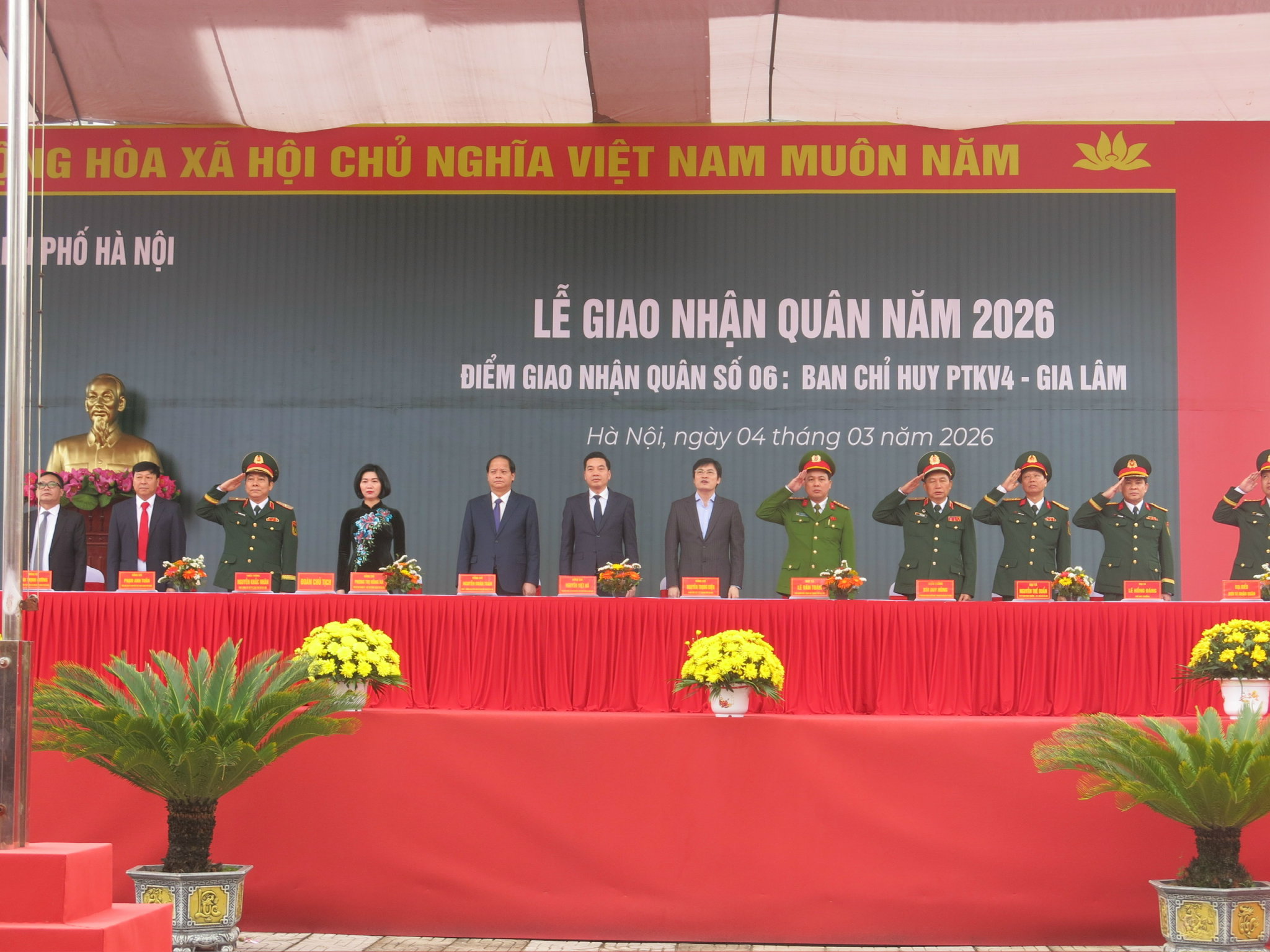 Sáng 04/03/2026, tại Nhà Văn hóa - Trung tâm dịch vụ tổng hợp xã Gia Lâm, Ban Chỉ huy phòng thủ khu vực 4 - Gia Lâm tổ chức Lễ giao - nhận quân năm 2026 tại Điểm giao - nhận quân số 06.