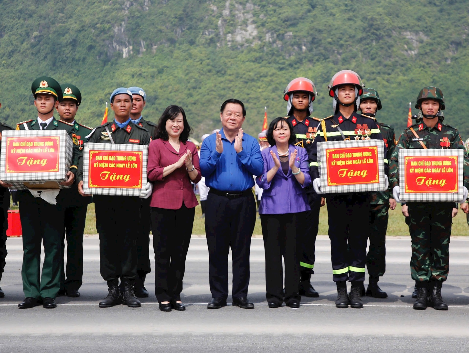 Ngay sau buổi tổng hợp luyện, các đồng chí lãnh đạo Trung ương và thành phố Hà Nội đã xuống thăm hỏi, động viên và tặng quà cán bộ, chiến sĩ các lực lượng tham gia.