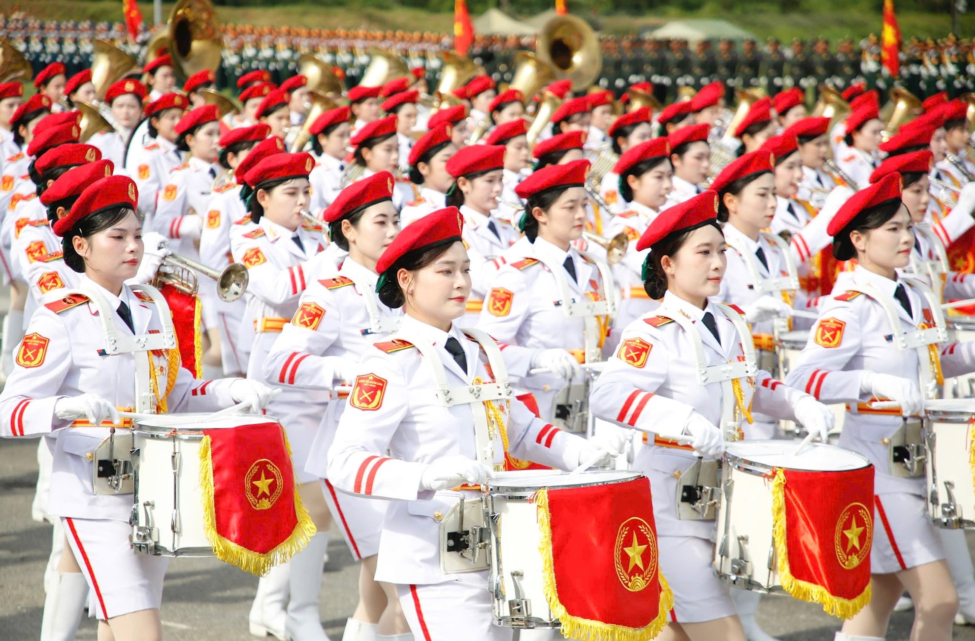 Khối nữ quân nhạc. Ảnh: Viết Thành