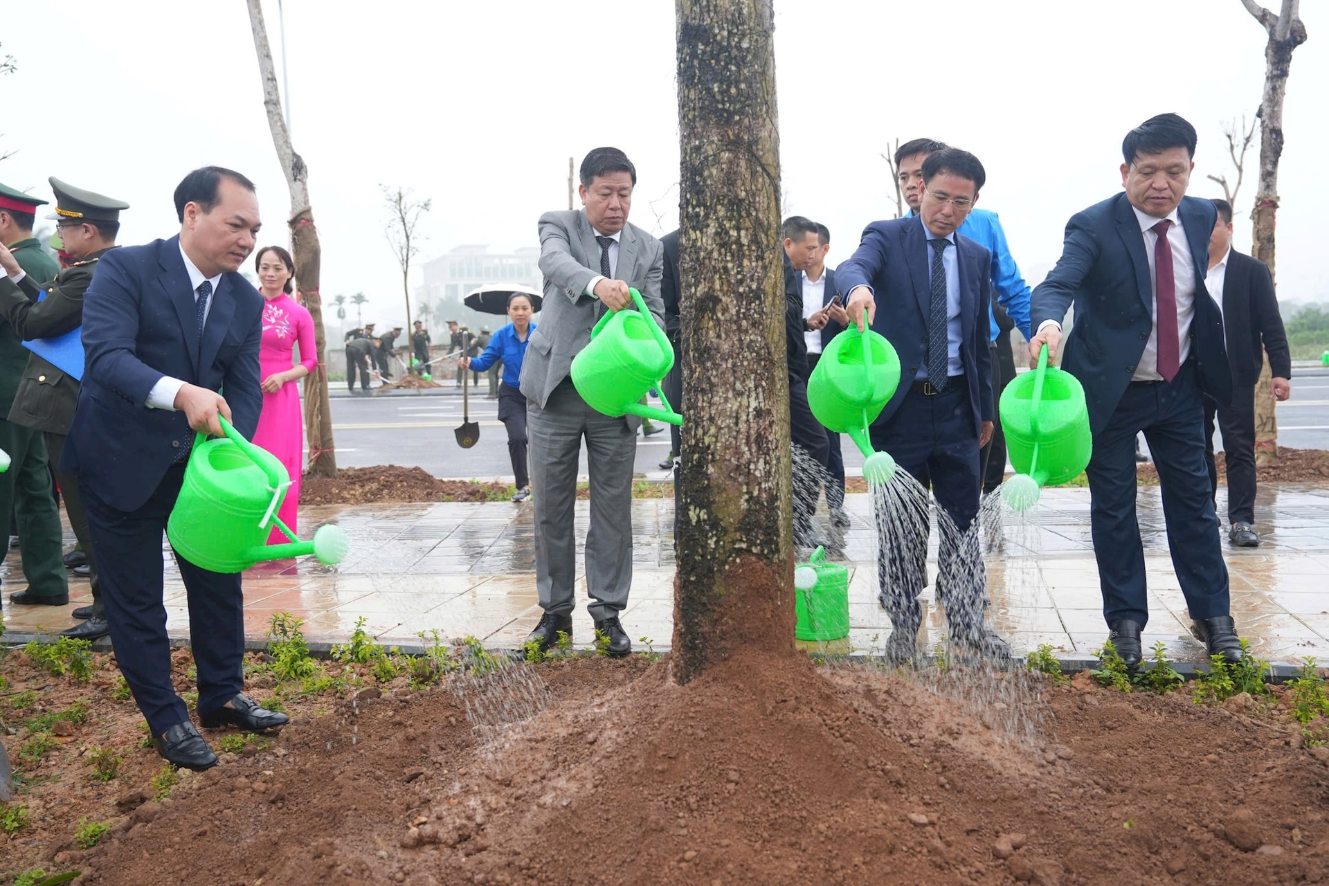 Ngay sau lễ phát động, các đồng chí lãnh đạo thành phố, lãnh đạo địa phương cùng cán bộ, nhân dân trực tiếp tham gia trồng cây tại khu vực phát động, thể hiện quyết tâm lan tỏa phong trào trồng cây sâu rộng trên địa bàn. Ngay sau lễ phát động, các thôn, tổ dân phố, cơ quan, đơn vị và trường học trên địa bàn xã tiếp tục triển khai trồng cây theo kế hoạch.