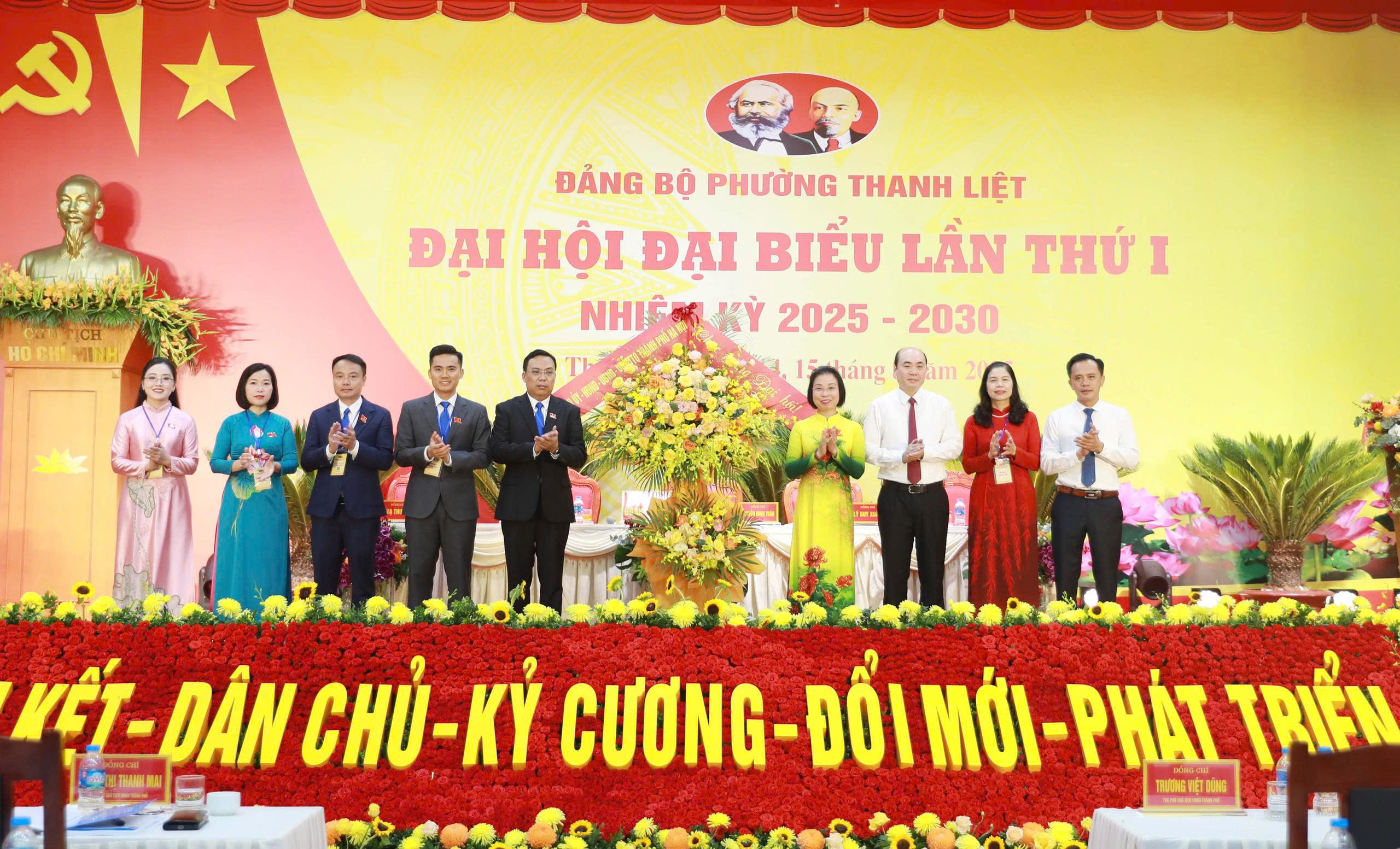 Lãnh đạo Thành phố tặng hoa chúc mừng Ban Chấp hành Đảng bộ phường Thanh Liệt nhiệm kỳ 2025 - 2030