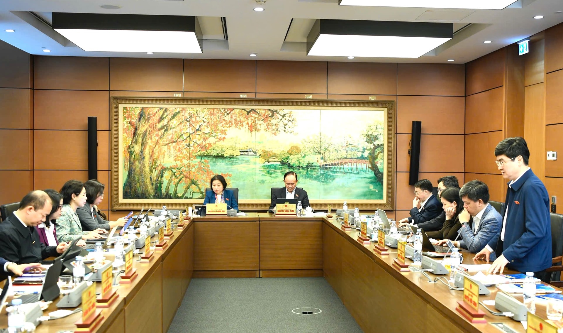 Chủ trì buổi thảo luận tại tổ Hà Nội có đồng chí Nguyễn Ngọc Tuấn, Chủ tịch HĐND Thành phố, Phó Trưởng đoàn ĐBQH Thành phố; đồng chí Phạm Thị Thanh Mai, Phó Chủ tịch HĐND Thành phố, Phó Trưởng đoàn ĐBQH Thành phố. Cùng dự có các vị đại biểu Quốc hội trong Đoàn ĐBQH thành phố Hà Nội.
