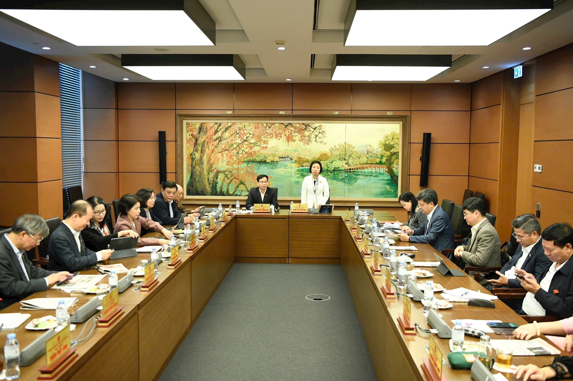 Chủ trì buổi thảo luận tại tổ Hà Nội có đồng chí Phạm Thị Thanh Mai, Phó Chủ tịch HĐND Thành phố, Phó Trưởng đoàn ĐBQH Thành phố; đồng chí Đỗ Đức Hồng Hà, Phó Chủ nhiệm Ủy ban Pháp luật và Tư pháp của Quốc hội Cùng dự có các vị đại biểu Quốc hội trong Đoàn ĐBQH thành phố Hà Nội.