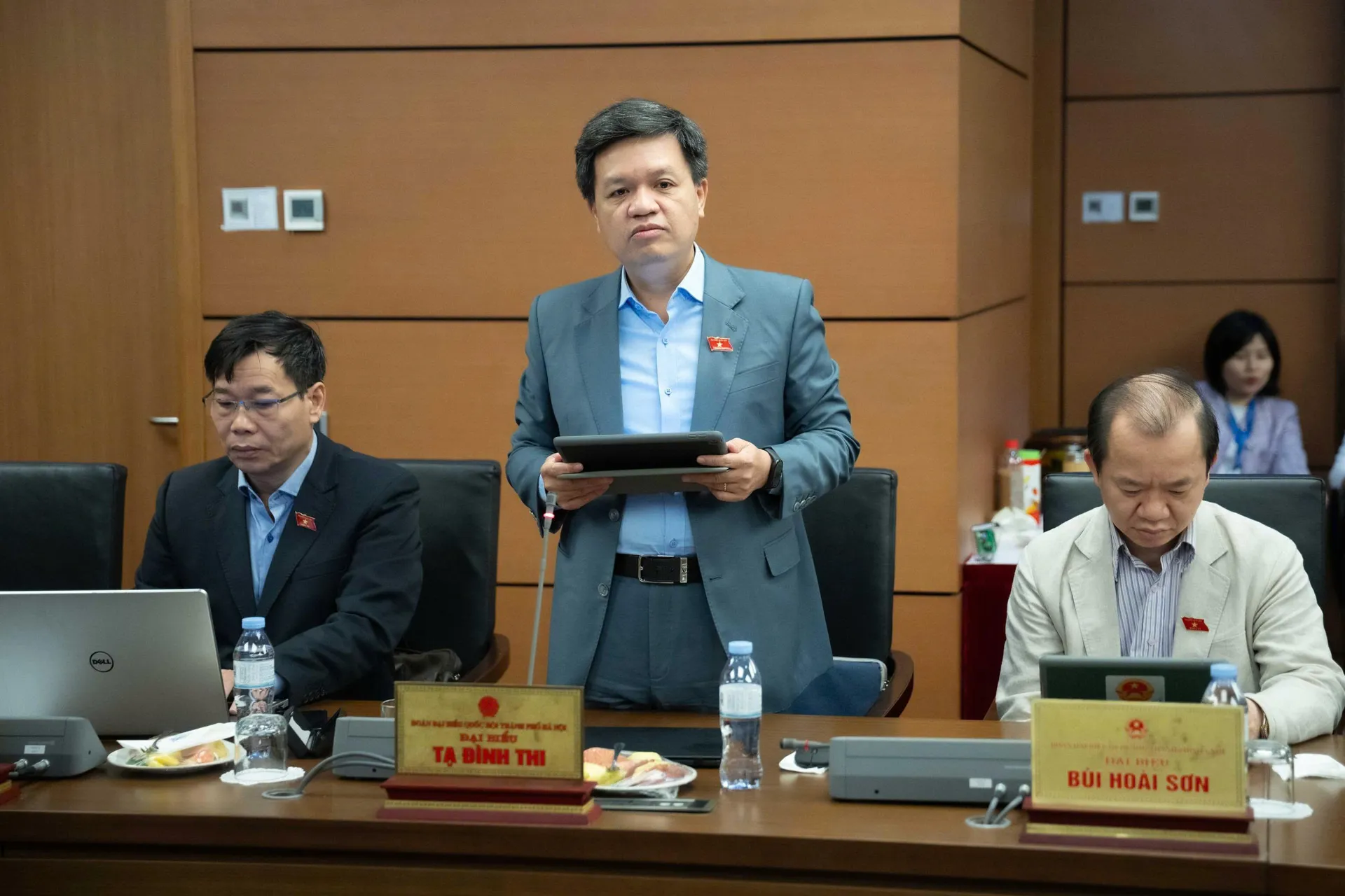 Chủ trì buổi thảo luận tại tổ Hà Nội có các đồng chí: Nguyễn Ngọc Tuấn, Chủ tịch HĐND Thành phố, Phó Trưởng đoàn ĐBQH Thành phố; đồng chí Phạm Thị Thanh Mai, Phó Chủ tịch HĐND Thành phố, Phó Trưởng đoàn ĐBQH Thành phố. Tham gia thảo luận có các vị đại biểu Quốc hội trong Đoàn ĐBQH thành phố Hà Nội.