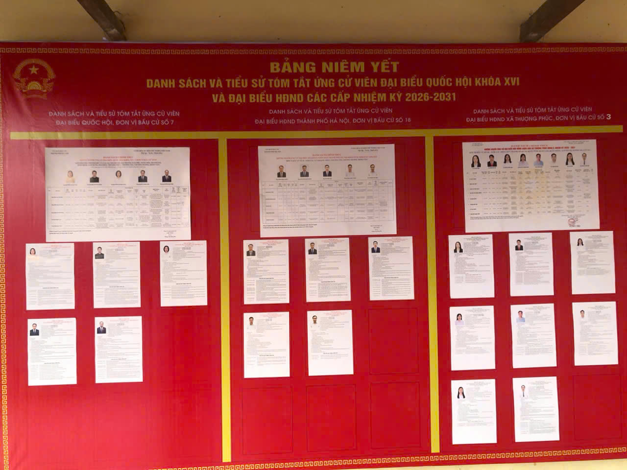 Công tác lập và niêm yết danh sách cử tri được triển khai chặt chẽ. Thông qua Công văn số 193/UBND-VHXH và Thông báo số 43/TB-UBND, xã đã rà soát, bổ sung, xóa tên khỏi danh sách cử tri theo đúng quy định; đồng thời tổ chức niêm yết công khai tại trụ sở UBND xã và 34 khu vực bỏ phiếu. Việc niêm yết được thực hiện trang trọng, dễ quan sát, tạo điều kiện để cử tri kiểm tra, phản ánh, kiến nghị kịp thời nếu có sai sót.