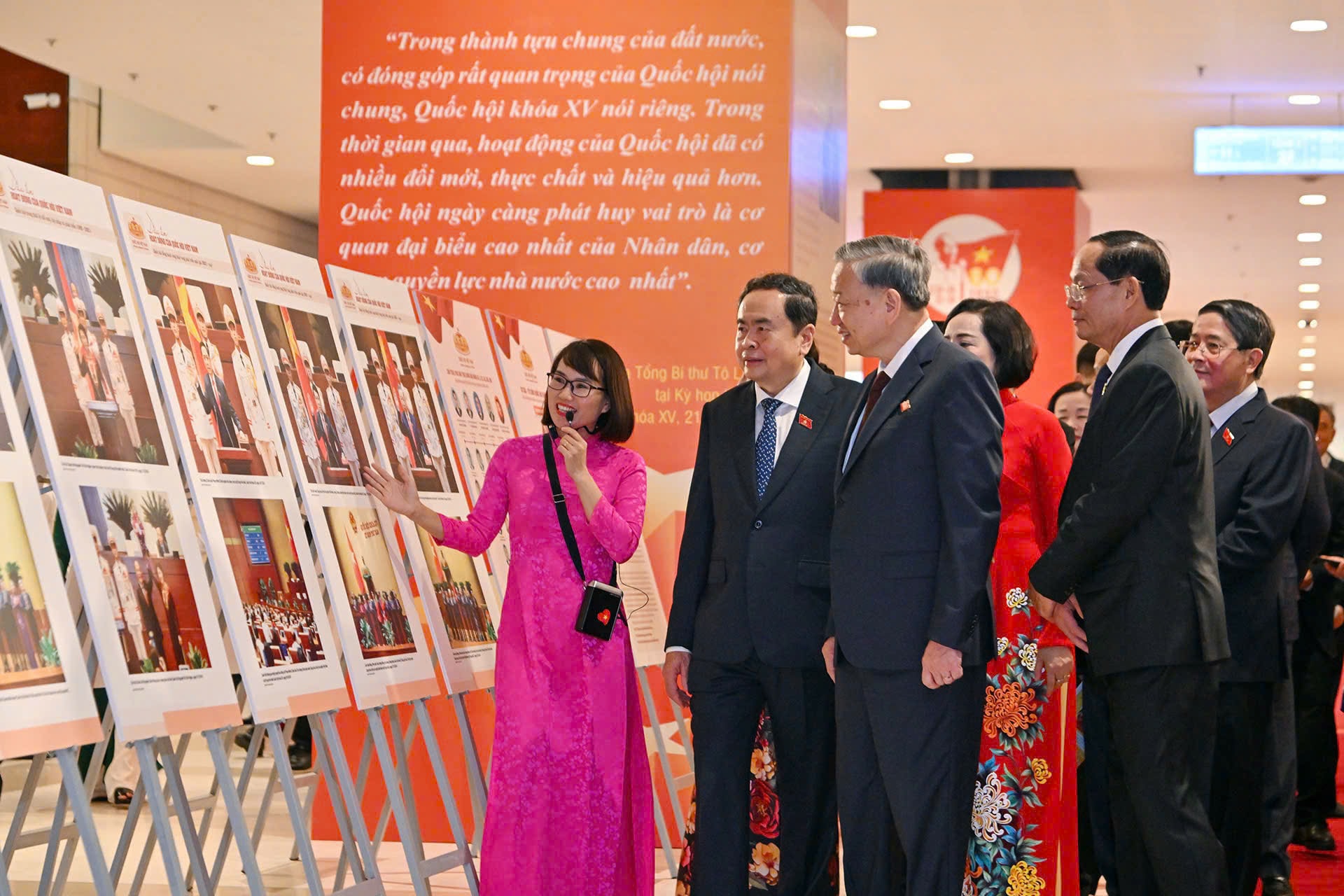 Trước đó, Tổng Bí thư Tô Lâm và các đại biểu đã thăm Triển lãm ảnh "Quốc hội Việt Nam - 80 năm kế thừa và phát triển". Triển lãm giới thiệu quá trình hình thành và phát triển của Quốc hội Việt Nam qua các thời kỳ cách mạng; góp phần tuyên truyền sâu rộng đến cử tri, nhân dân về vị trí, vai trò và sứ mệnh của Quốc hội trong sự nghiệp xây dựng đất nước Việt Nam phồn vinh, văn minh, hạnh phúc; đồng thời, tôn vinh những đóng góp của các thế hệ đại biểu Quốc hội trong sự nghiệp phụng sự Tổ quốc và Nhân dân.