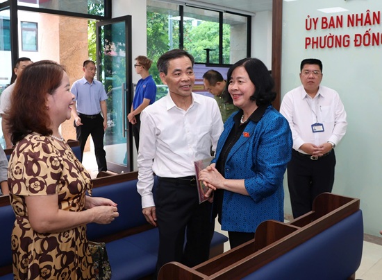 * Trước khi vào hội nghị tiếp xúc cử tri, đồng chí Tổng Bí thư Tô Lâm và các đồng chí lãnh đạo Trung ương, thành phố Hà Nội đã đi thăm tại Trung tâm tại điểm phục vụ hành chính công của phường Đống Đa.