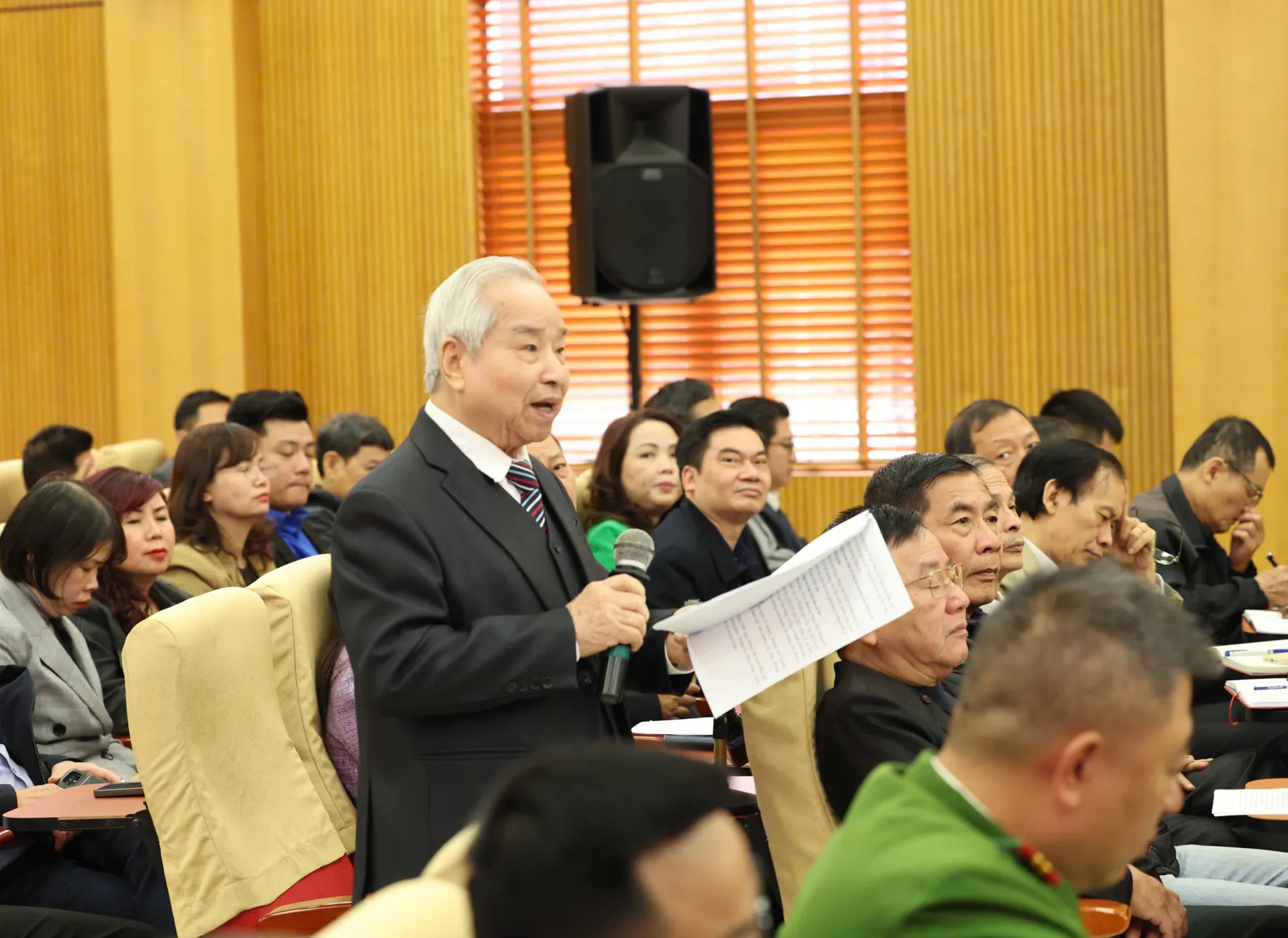 Đại biểu Quốc hội dự hội nghị tiếp xúc cử tri có đồng chí Trung tướng Nguyễn Quốc Duyệt, Chánh Thanh tra Bộ Quốc phòng; đồng chí Nguyễn Phi Thường, Thành ủy viên, Giám đốc Sở Xây dựng Hà Nội.