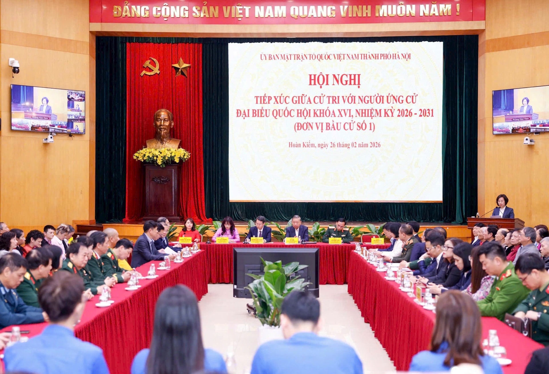 Sáng 26/02/2026, Tổng Bí thư Tô Lâm cùng các ứng cử viên đại biểu Quốc hội khóa XVI, Đơn vị bầu cử số 1 thành phố Hà Nội đã tiếp xúc cử tri để báo cáo chương trình hành động và thực hiện vận động bầu cử.