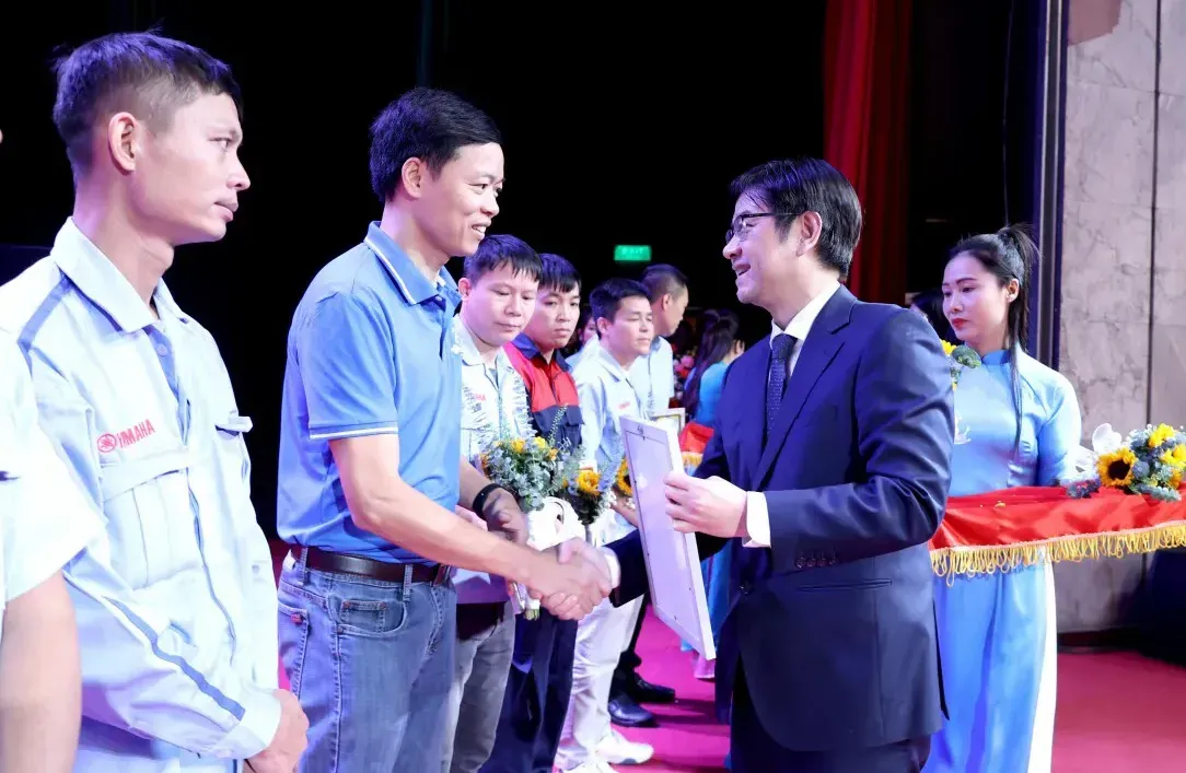 Các đại biểu trao giải cho thí sinh giành giải Nhất hội thi thợ giỏi Thành phố năm 2025