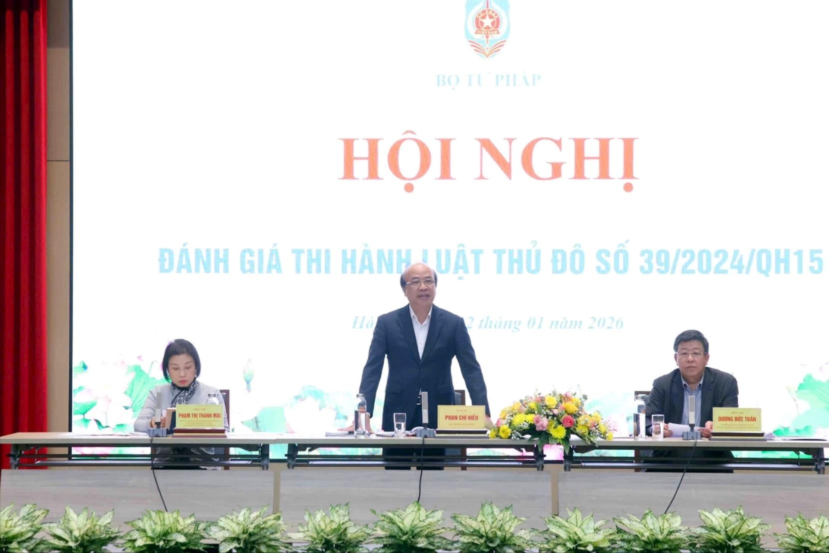 Ngày 12/01/2026, Bộ Tư pháp phối hợp với UBND thành phố Hà Nội tổ chức hội nghị đánh giá thi hành Luật Thủ đô số 39/2024/QH15 và đề xuất nội dung cơ chế, chính sách đặc thù xây dựng dự án Luật Thủ đô (sửa đổi).