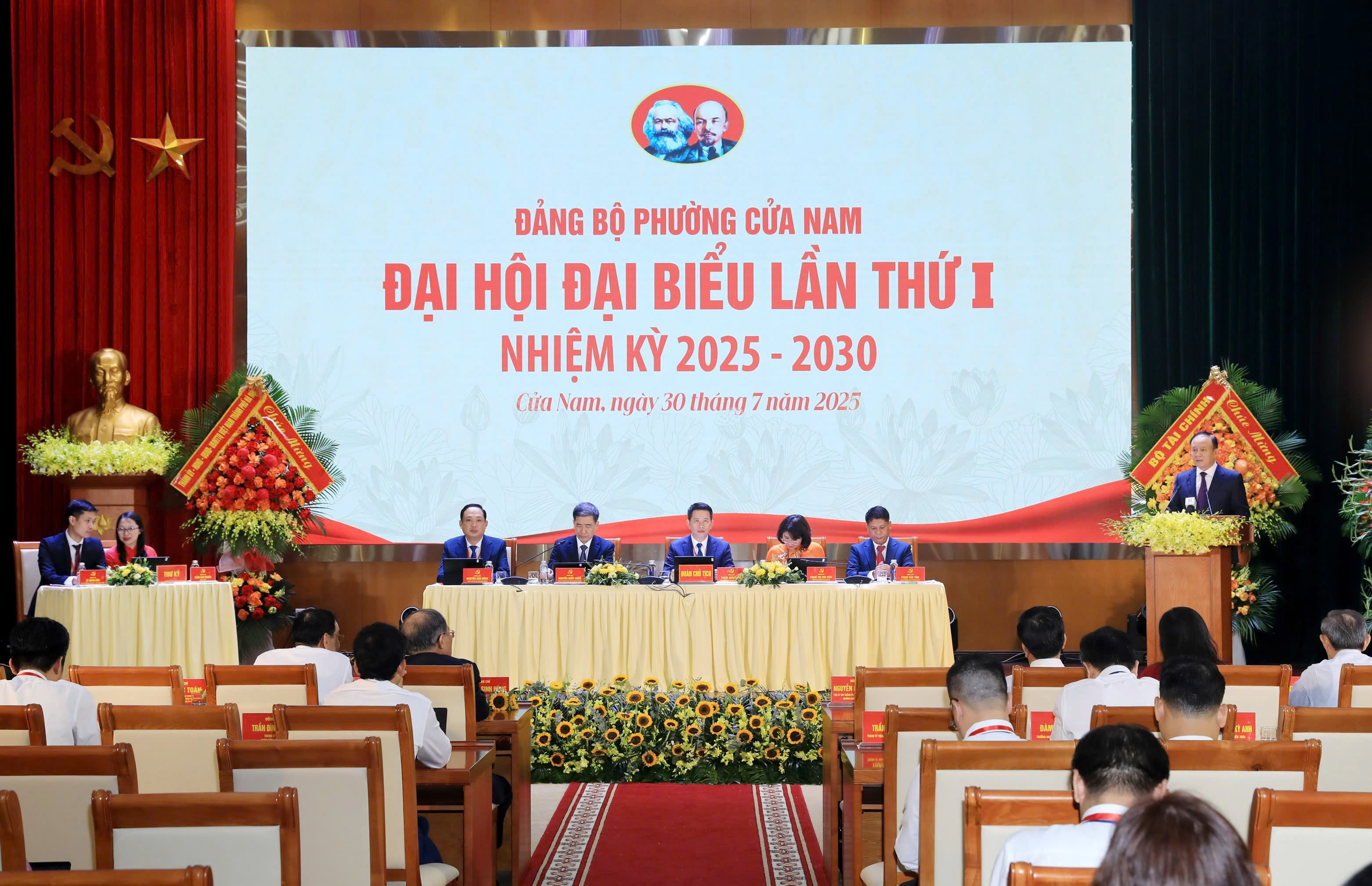 Sáng 30/7/2025, Đại hội đại biểu Đảng bộ phường Cửa Nam lần thứ I, nhiệm kỳ 2025-2030 được long trọng tổ chức với chủ đề “Phát huy truyền thống văn hiến, anh hùng; đoàn kết, bản lĩnh, tiên phong, đổi mới, sáng tạo; xây dựng phường Cửa Nam giàu đẹp, văn minh, hạnh phúc”.