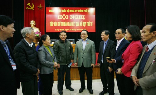 Đại diện Đoàn đại biểu Quốc hội đã báo cáo với cử tri kết quả kỳ họp thứ ba Quốc hội khóa XIV; thông báo trả lời ý kiến cử tri của các cấp, các ngành Trung ương và Thành phố Hà Nội trước kỳ họp thứ ba Quốc hội khóa XIV.
