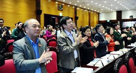 Đại biểu Quốc hội vỗ tay mừng "Giờ phút lịch sử". Ảnh: Nhật Thăng/vietnamnet