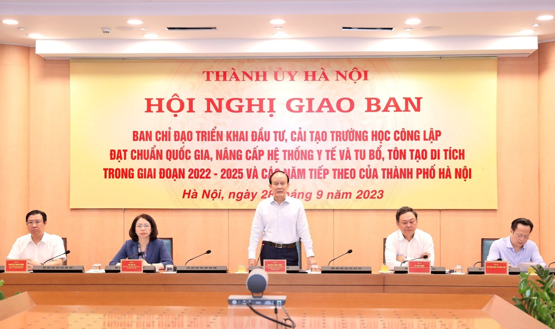 Sáng 28/9/2023, Phó Bí thư Thành ủy, Chủ tịch HĐND thành phố Hà Nội Nguyễn Ngọc Tuấn, Trưởng ban Chỉ đạo Chương trình 03-CTr/TU về Triển khai đầu tư, cải tạo trường học công lập đạt chuẩn quốc gia, nâng cấp hệ thống y tế và tu bổ, tôn tạo di tích trong giai đoạn 2022-2025 và các năm tiếp theo của thành phố Hà Nội đã chủ trì hội nghị giao ban triển khai một số nhiệm vụ trọng tâm của Ban Chỉ đạo những tháng cuối năm 2023.