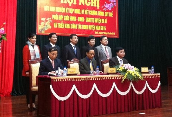 Thường trực HĐND huyện Ba Vì vừa phối hợp tổ chức hội nghị rút kinh nghiệm kỳ họp thứ 12 và ký kết Chương trình, Quy chế phối hợp công tác giữa Thường trực HĐND - UBND - Ủy ban MTTQ huyện và triển khai công tác năm 2016.