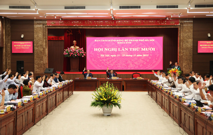 Sáng 21/11/2022, Ban Chấp hành Đảng bộ thành phố Hà Nội tổ chức hội nghị lần thứ 10 để họp bàn, cho ý kiến về báo cáo tình hình thực hiện nhiệm vụ phát triển kinh tế - xã hội năm 2022 và kế hoạch phát triển kinh tế - xã hội năm 2023 cùng nhiều nội dung quan trọng khác.