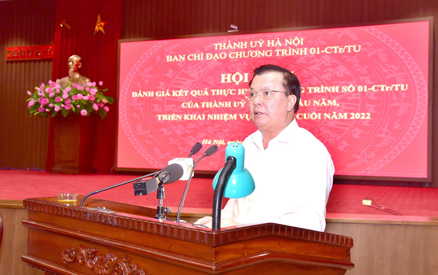 Sáng 13/7/2022, Ban Chỉ đạo Chương trình số 01-CTr/TU của Thành ủy (khóa XVII) tổ chức Hội nghị đánh giá kết quả thực hiện Chương trình 6 tháng đầu năm, triển khai nhiệm vụ 6 tháng cuối năm 2022. Đồng chí Đinh Tiến Dũng, Ủy viên Bộ Chính trị, Bí thư Thành ủy, Trưởng đoàn đại biểu Quốc hội thành phố, Trưởng ban Chỉ đạo Chương trình số 01-CTr/TU chủ trì hội nghị.