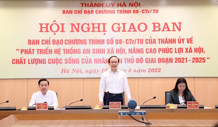 Sáng 13/4/2022, Phó Bí thư Thành ủy, Chủ tịch HĐND thành phố Nguyễn Ngọc Tuấn, Trưởng ban Chỉ đạo Chương trình số 08-CTr/TU của Thành ủy Hà Nội khóa XVII về “Phát triển hệ thống an sinh xã hội, nâng cao phúc lợi xã hội, chất lượng cuộc sống của nhân dân Thủ đô giai đoạn 2021-2025” chủ trì giao ban kết quả thực hiện quý I, triển khai nhiệm vụ quý II và các tháng tiếp theo năm 2022 của Ban chỉ đạo.