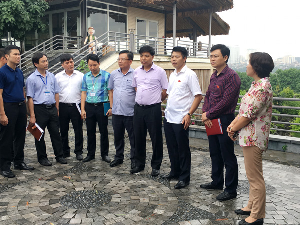 Đoàn đã tiến hành khảo sát tại: Dự án Trung tâm thương mại, văn phòng và nhà ở số 108 Nguyễn Trãi (Thanh Xuân), Nhà hàng Nắng sông Hồng (Long Biên), các công trình nhà ở xây dựng trên đất nông nghiệp (phường Định Công, quận Hoàng Mai), khu xưởng sản xuất xây dựng trái phép trên đất nông nghiệp (xã Nguyên Khê, huyện Đông Anh), Trạm trộn bê tông Việt Ý (Thanh Trì).