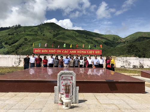 Đoàn công tác thắp hương tại Ngôi mộ tập thể 34 chiến sỹ Hà Nội tại Khu tưởng niệm Liệt sỹ Hà Nội mặt trận Bắc Kon Tum