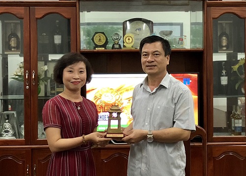 Đồng chí Phạm Thị Thanh Mai – Trưởng Ban Kinh tế - Ngân sách HĐND Thành phố, Trưởng đoàn công tác tặng quà lưu niệm cho đồng chí Đại tá Bùi Huy Biết - Bí thư Đảng ủy, Chính ủy Quân đoàn 3.