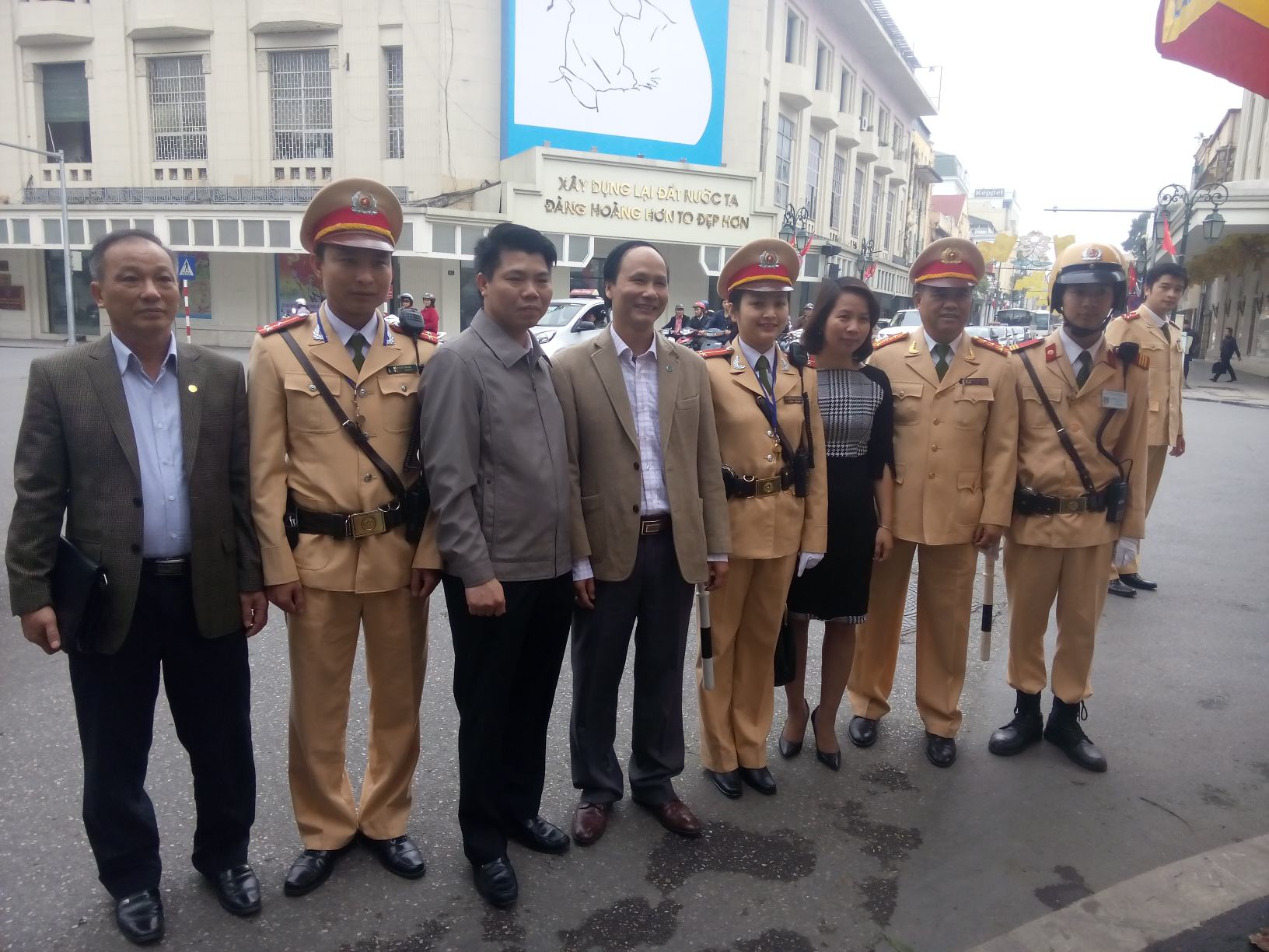 Các thành viên Ban Pháp chế và Cảnh sát giao thông Thành phố tại nút giao Tràng Tiền - Hàng Khay