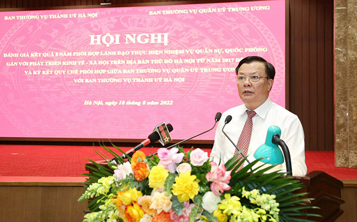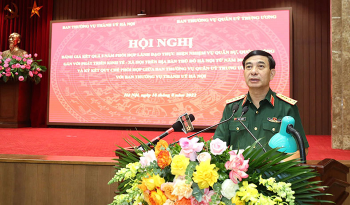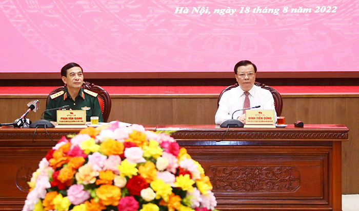 Ngày 18/8/2022, tại Hà Nội, Ban Thường vụ Quân ủy Trung ương và Ban Thường vụ Thành ủy Hà Nội tổ chức hội nghị đánh giá kết quả hoạt động phối hợp lãnh đạo, chỉ đạo thực hiện nhiệm vụ quân sự quốc phòng gắn với phát triển kinh tế - xã hội trên địa bàn Thủ đô Hà Nội.