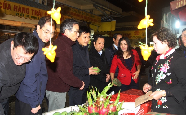 Đoàn khảo sát kiểm tra nguồn gốc các mặt hàng hoa quả tại chợ Long Biên