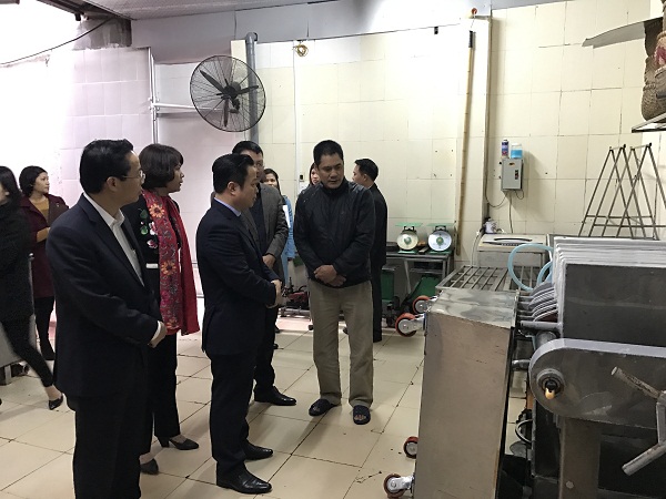 Đoàn khảo sát trực tiếp một cơ sở sản xuất bún tại phường Phú Đô