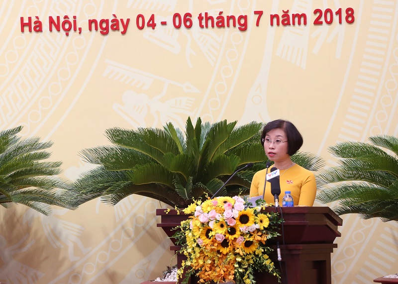 Tại kỳ họp thứ Sáu, HĐND TP khóa XV, Trưởng Ban Kinh tế - Ngân sách Phạm Thị Thanh Mai đã trình bày Báo cáo thẩm tra Kết quả thực hiện dự toán thu, chi ngân sách 6 tháng đầu năm và nhiệm vụ trọng tâm, giải pháp 6 tháng cuối năm 2018; vay lại một phần vốn vay ODA của Chính phủ Nhật Bản để thanh toán chi phí bổ sung do kéo dài thời gian thực hiện hợp đồng Gói thầu số 1 và số 3 của dự án Xây dựng cầu Nhật Tân và tuyến đường 2 bên đầu cầu; dự thảo Nghị quyết HĐND về nhiệm vụ trọng tâm phát triển kinh tế - xã hội, thu chi ngân sách 6 tháng cuối năm 2018.