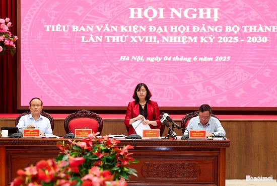 Chiều 04/6/2026, Tiểu ban Văn kiện Đại hội Đảng bộ thành phố Hà Nội lần thứ XVIII, nhiệm kỳ 2025-2030 tổ chức hội nghị thảo luận, cho ý kiến về việc tiếp thu, hoàn thiện dự thảo Báo cáo chính trị trình Đại hội Đảng bộ thành phố lần thứ XVIII.