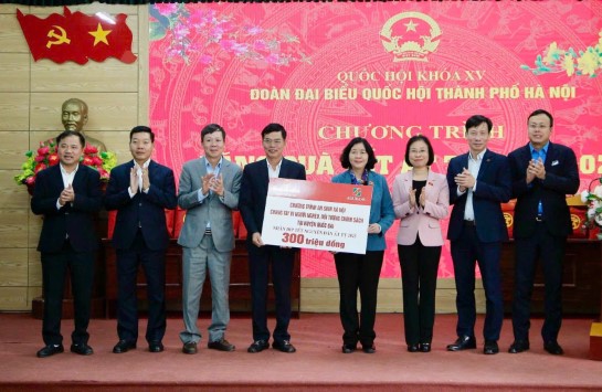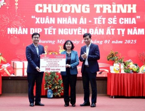 Bí thư Thành ủy Hà Nội Bùi Thị Minh Hoài trao hỗ trợ 300 triệu đồng do Agribank tài trợ tặng huyện Chương Mỹ tại chương trình “Xuân nhân ái - Tết sẻ chia”