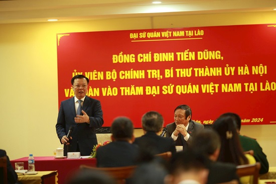 Bí thư Thành ủy Hà Nội Đinh Tiến Dũng thăm Đại sứ quán Việt Nam tại Lào