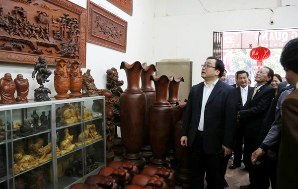Bí thư Thành ủy thăm làng nghề mộc Vân Hà. Ảnh hanoi.gov.vn