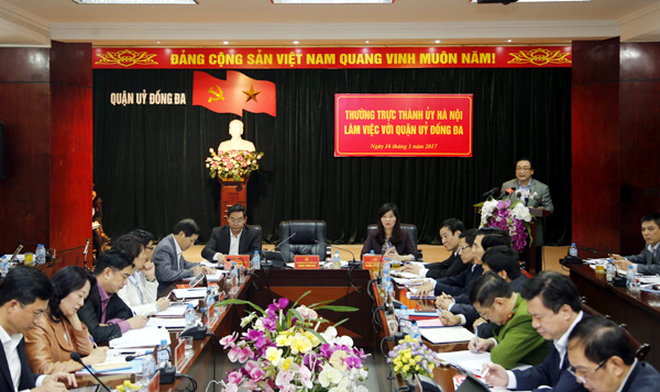 Kết luận buổi làm việc, Bí thư Thành uỷ Hoàng Trung Hải ghi nhận, đánh giá cao những kết quả đã đạt được trong năm 2016 và quý I/2017 của đảng bộ, chính quyền và nhân dân quận Đống Đa. Đặc biệt, quận đã có nhiều đóng góp chung vào ngân sách TP với vai trò là đơn vị đứng đầu TP về tổng thu ngân sách. Những nỗ lực trong giải quyết nhà siêu mỏng, siêu méo; các vụ vi phạm trật tự xây dựng; cấp giấy chứng nhận quyền sử dụng đất... trên địa bàn của các cấp chính quyền quận đã đáp ứng được nguyện vọng của nhân dân.
