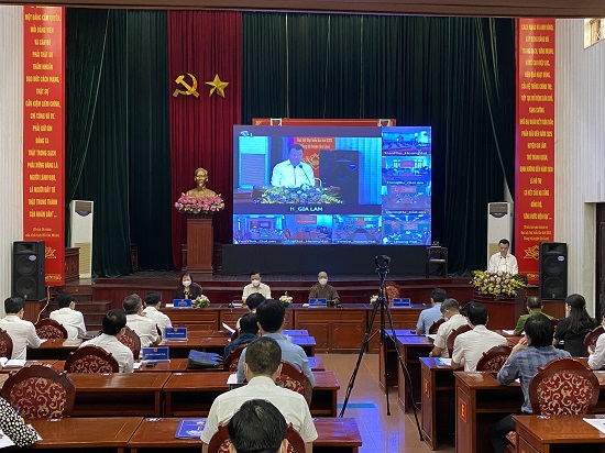 Các đại biểu tham dự tại điểm tiếp xúc trực tuyến trụ sở huyện Gia Lâm