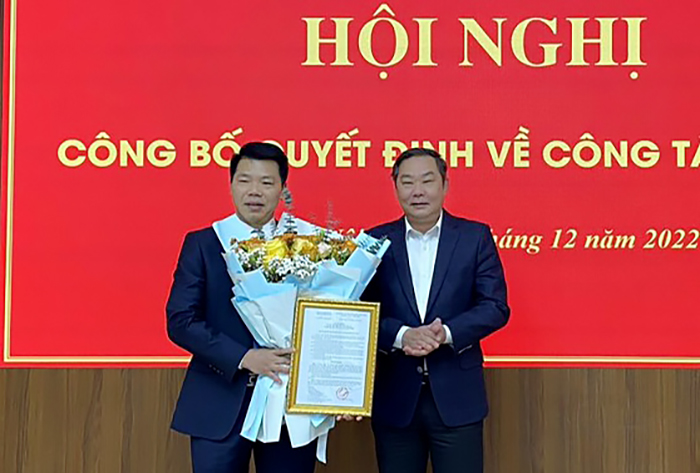 Phó Chủ tịch Thường trực UBND Thành phố Lê Hồng Sơn trao quyết định và tặng hoa chúc mừng đồng chí Nguyễn Nguyên Quân